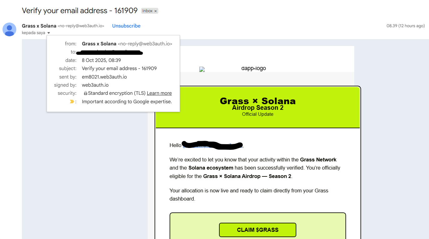 i have received email to claim grass airrdrop but i know that fake website but i see email from web3auth.io, look at screenshot!
